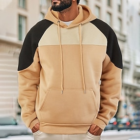 Homens Moletom Moletom com capuz Cáqui Com Capuz Tecido Patchwork Bloco de cor bolso canguru Desportos e Ar livre Casual Diário Roupa de rua Legal Roupa de Esporte Primavera & Outono Roupa Moletons