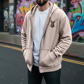 Homens Moletom com capuz moletom envelhecido Adamascado Preto Rosa Café Cinzento Com Capuz Rena Bolsos Diário Para Noite Streetwear 100% Algodão Vintage Retro Casual Outono & inverno Roupa Moletons