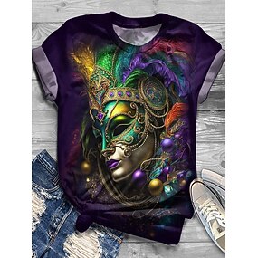 Carnaval Mulheres Camiseta Imprimir Gráfico Vintage Moda à moda Manga Curta Gola Redonda Tops regulares Diário Verde Claro Roxo Verde Verão Primavera