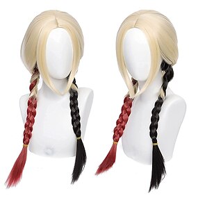 Perucas cosplay Loiro Vermelho Preta Liso Cabelo Sintético Médio perucas Mulheres perucas Para festa