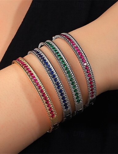 Zircão Clássico Mini Elegante Vintage Moda Na moda cromada Pulseira de jóias Violeta / Azul / Verde Para Casamento Festa Noivado Baile de Formatura