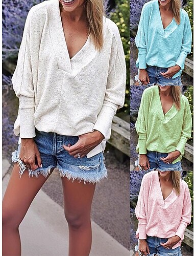 Mulheres Camisa Popover Camisa casual Blusa Côr Sólida Férias Roupa de rua à moda Manga Longa Decote V Tops regulares Diário Ao ar livre Feriado Azul Preto Branco Amarelo Vermelho Verão Primavera