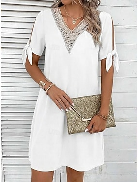 Mulheres Minivestido Vestido branco Elegante Moda Moderno Ao ar livre Férias Para Noite Normal Tecido Manga Curta Decote V Azul Preto Branco Rosa Verão Primavera