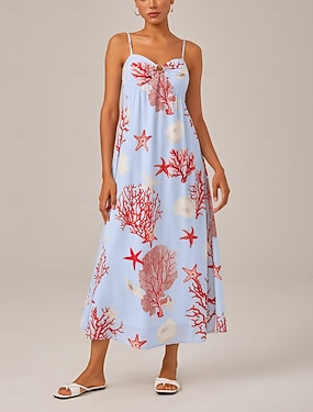 vestido vermelho de férias com tema de oceano
