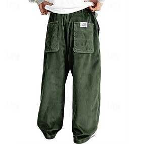 Homens Calças Cargo Calças de Veludo Calças Calças largas Calça casual Bolsos Cintura elástica Perna reta Tecido Conforto Macio Comprimento total Ao ar livre Diário Para Noite Moda Roupa de rua Verde
