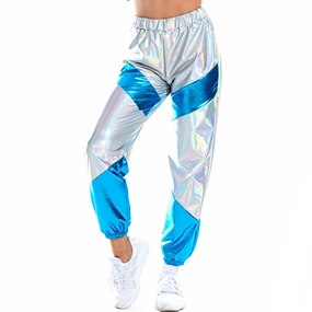 Anos 80 Hip hop Metálico Brilhante Calças Calça Jogger Bloco de cor Fantasia Mulheres Fantasia de Carnaval Carnaval Espetáculo Festa Parada do Orgulho Adulto Calças