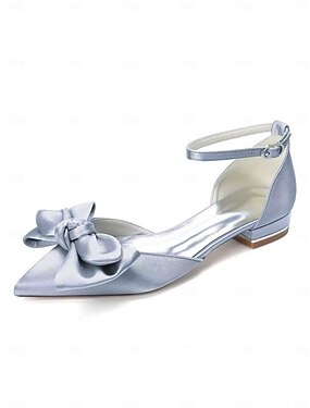 Sapatilhas de casamento femininas prateadas com pérolas e laço - elegantes sapatilhas para noivas em casamentos ao ar livre.