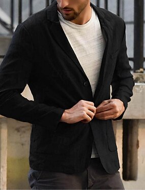 Homens Blazer de linho Casaco esportivo Colar de fechamento Moda Casual Cor Sólida Preto Moderno Dois botões de peito simples