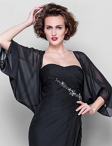 Wraps Shrug Femininos Wraps de Mãe Casacos Jaquetas Elegantes Proteção Solar Manga 3/4 de Chiffon Wraps de Convidados de Casamento com Cor Pura Para Primavera Outono Vestir para Impressionar