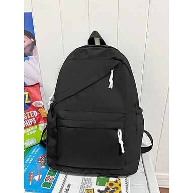 Mochila escolar unissex de nylon de cor sólida com design multibolsos – mochila leve e minimalista para adolescentes e estudantes universitários