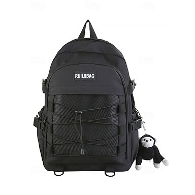 Mochila casual grande para adolescentes - mochila escolar estilo coreano com vários bolsos e chaveiro de pelúcia para escola, viagens e atividades ao ar livre, preta, branca e vermelha