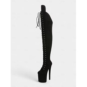 Botas femininas plataforma acima do joelho com cadarço - botas de salto alto para pole dance, cano alto, para vida noturna e festas