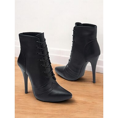 Botas femininas pretas de salto agulha com cadarço e detalhes brogue - sapatos de bruxa gótica para halloween e cosplay