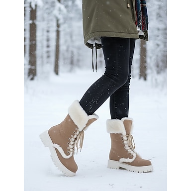 Botas de inverno femininas com cadarço e forro de pele sintética - botas de neve quentes em camurça com sola antiderrapante para clima frio e atividades ao ar livre.