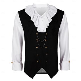 Rococó Vitoriano Steampunk Festa a Fantasia Colete Vampiros Nobre Fantasia Homens Real Dia Das Bruxas Carnaval Espetáculo Festa LARP Adulto Blusa