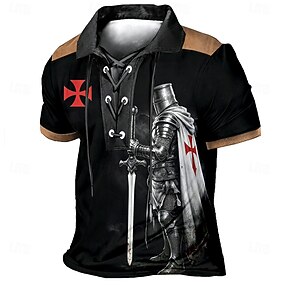 Homens Cavaleiros Templários Camisas Polo Manga Curta Camisas polo Lapela Vintage Casual Streetwear Roupa Diária Impressão 3D Malha Respirável Primavera Verão Azul Preto Marron