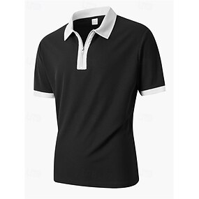 Homens Pólo Polo com zíper Casual Diário Quarter Zip Manga Curta Moda Tecido Zíper Verão Primavera Normal Preto Branco Caqui Cinzento Escuro Pólo