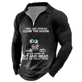 Homens Engraçado Polo com zíper Manga Longa Camisas polo Colarinho Business casual Férias Traje de festa para noite Dia a Dia Impressão 3D Primavera Outono & inverno Preto Vinho Azul