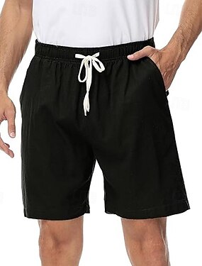 Homens Shorts de linho Shorts de verão Com Cordão Cintura elástica Bolso frontal Tecido Conforto Macio Comprimento do joelho Casual Diário Moda Estilo Clássico Preto Branco