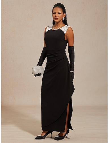 Mulheres Vestido Longo Vestido da bainha Vestidos De Sereia Trompete Vestido A Line Elegante Formal coquetel Festa de Noite Festa Convidado do casamento Normal Floral Sem Manga Gola Redonda Preto