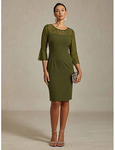 Mulheres Vestido midi Vestido da bainha Elegante Normal Côr Sólida Meia Manga Gola Redonda Oliva