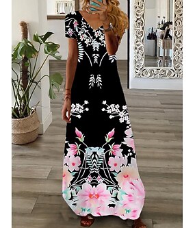vestido longo maxi feminino vestido casual vestido de verão vestido estampado moda streetwear férias ao ar livre estampa diária manga curta vestido decote em v ajuste regular preto branco rosa verão primavera s m l xl xxl