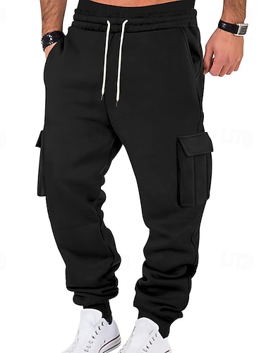 Homens Calças de lã Calças Esportivas Corredor Calças Calça de moletom cargo Bolsos Com Cordão Cintura elástica Tecido Conforto Quente Esportes Diário Moda Casual Preto Branco Micro-Elástica