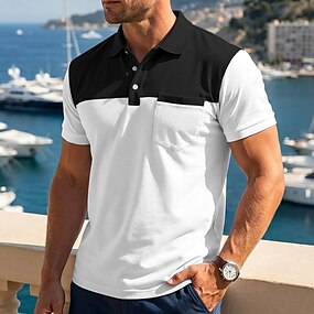 Homens Camisa de golfe Polos Piquê Casual Trabalho Lapela gola pólo com nervuras Manga Curta Básico Moderno Bloco de cor Bolsos Bloco de cor Verão Primavera Verão Normal Azul Preto Azul Marinha