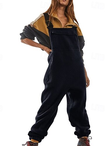 Mulheres Normal Macacão Ativo Côr Sólida Sem Manga Decote V Bolsos Diário Férias Ajuste Largo Preto Azul Marinha Marron Verão