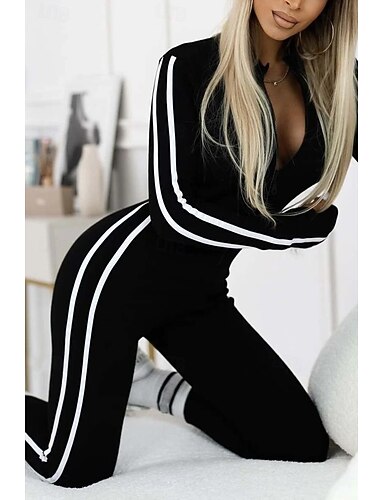 Mulheres Normal Macacão Ativo Listrado Manga Longa Decote Redondo Cintura Alta Imprimir Férias Diário Delgado Preto Bege Cinzento Primavera