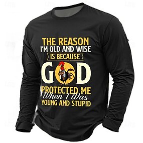 Camisa Bíblica Masculina de Manga Longa Camiseta Gráfica | Engraçada Velho Sábio Citação "Deus Me Protegeu Quando Eu Era Jovem Estúpido"