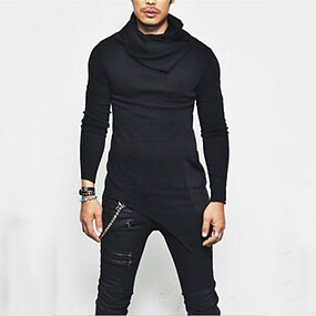 Homens Camiseta Camisa de gola alta Camisa de manga longa Manga Longa Gola Enrolada Primavera Outono Tecido Moda Casual Robusto Férias Casual Final de semana Preto Verde Cinzento Top Tee para Homens