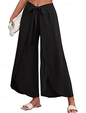 Mulheres Linho de algodão sintético Calças Calça verão Calças largas Elegante Férias Estilo Étnico Comprimento total Cintura Alta Com Cordão Perna larga Conforto Sem Elasticidade Diário Praia Formal