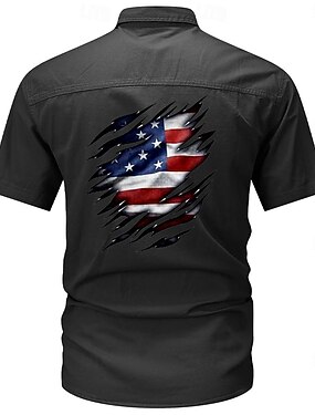 Homens 4 de julho - 250º aniversário dos EUA Bandeiras Camisas de trabalho camisa ocidental Camisa de carga Manga Curta Casual Tático Para Noite Verão Aberto para a Lateral Botões Imprimir Preto