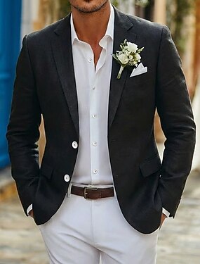 Homens Blazer de linho Casaco esportivo Colar de fechamento Moda Casual Cor Sólida Preto Moderno Dois botões de peito simples