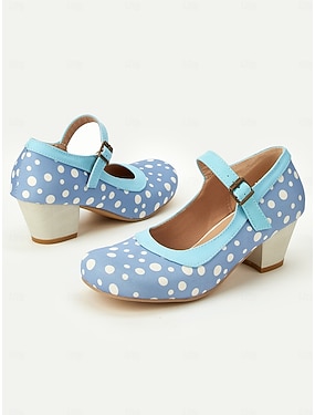 sapatos mary jane femininos de bolinhas azuis – sapatos retrô de salto médio com tira de fivela para roupas de inspiração vintage e festas de dança