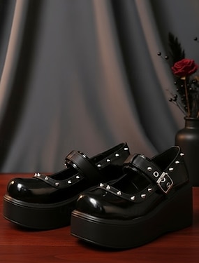 Sapatos femininos Mary Jane pretos com plataforma e tiras cravejadas – saltos grossos estilo punk gótico para Halloween, cosplay e moda alternativa