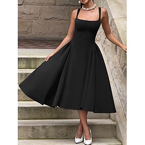 Retro Vintage Anos 50 Vestido Coquetel Vestidos Vestido Flare Côr Sólida Fantasia Mulheres Baile de Máscaras Festa / Eventos Festa de Solteira Festival Adulto Vestido Vestidos de baile