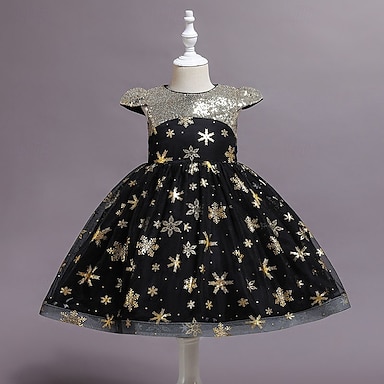 Vestido para Meninas das Flores Para Meninas Vestido formal Traje de casamento Festa Casamento Formal Adorável Princesa Patchwork Com Transparência Estrela Manga Curta Gola Redonda Preto Rosa 4 anos +