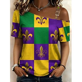 Carnaval Mulheres Camiseta T-shirt Imprimir Gráfico à moda Clássico Casual Manga Curta Gola Redonda Tops regulares Diário Esportes Para Noite Verde Verão Primavera