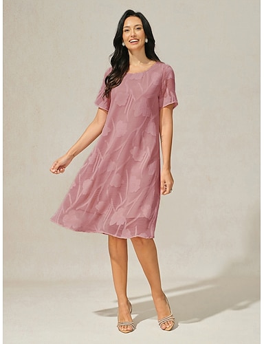 Mulheres Minivestido Vestido de turno Elegante Côr Sólida Manga Curta Gola Redonda Rosa empoeirada
