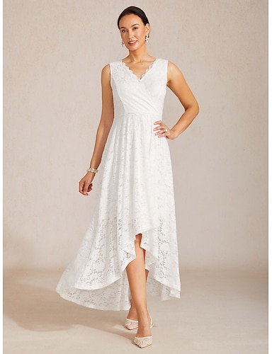 Mulheres Vestido Longo Vestido A Line Elegante Diário Férias Casamento Renda Assimétrico Côr Sólida Sem Manga Decote V Branco