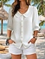Mulheres Camisa Popover Camisa casual Blusa Ilhó Côr Sólida Elegante Diário à moda Manga 3/4 Decote V Tops regulares Diário Praia Feriado Branco Verão Primavera Outono