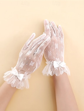 Renda / Tule Até o Pulso Luva Elegante / à moda / Estilo Clássico Com Cor Pura Luvas de Festa / Casamento