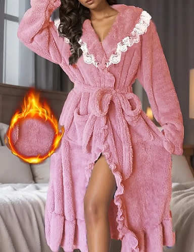 presente feminino roupões vestido pijamas roupões festa em casa festa de casamento renda retalhos cor pura elastano simples casual macio outono inverno manga longa renda cinto incluído roupas para