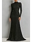 Linha A Vestidos de noite Elegante Traje formal Carnaval Formal Longo Manga Longa Ilusão Decote Destacável Cetim com Purpurina 2025