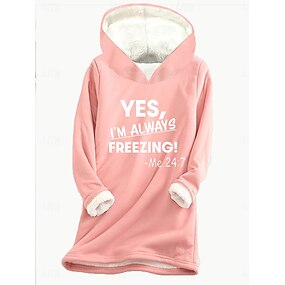 Mulheres Moletom Gráfico Letra Quente Casual Difusa Manga Longa Gola Redonda Decote Redondo Tops regulares Rua Casual Preto Amarelo Rosa Rosa Escuro Vermelho Primavera Outono Inverno