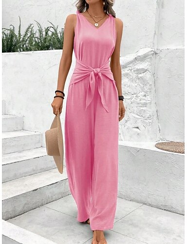 Mulheres Normal Macacão Roupa de rua Côr Sólida Sem Manga Decote U Bolsos Rua Para Noite Normal Rosa Marron Verde Verão