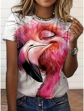 Mulheres Camiseta Imprimir Gráfico Animal Vintage à moda Clássico Manga Curta Gola Redonda Tops regulares Diário Final de semana Azul Branco Amarelo Rosa Verão Primavera Outono Inverno