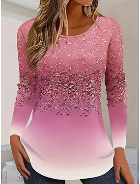 Camiseta Feminina de Manga Longa Gola Careca Manga Longa Tunic Gráfica Geométrica Elegante Vintage Estilosa Gola Redonda Tops Regulares Impressão Diária Rosa Azul Roxo Verde Caqui Pré-inverno